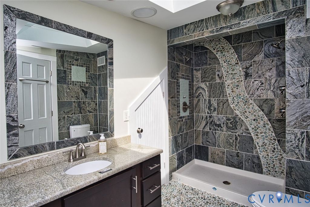 Rare find in Glen Allen. This updated 3-bedroom, 2.1 bath home combines custom upgrades, privacy, and a layout that stands out from the typical cookie-cutter options, while being priced well below market value. Step inside to a light-filled interior with skylights throughout and custom archways that add character you won't find in newer builds. The renovated kitchen features granite countertops and modern finishes, flowing easily into the main living space, ideal for both everyday living and entertaining. Upstairs, the entire second floor is dedicated to a private owner's retreat. The fully updated en-suite bath is a standout, featuring custom tile work and a spa-style shower with three showerheads, including an overhead rain feature. Both full bathrooms have been upgraded with tile showers, giving the home a clean, high-end feel. A premium sound system adds another layer of comfort and functionality for daily living or hosting. Outside, enjoy a fully fenced backyard offering privacy and space to relax or entertain. Located in a highly desirable school district and just minutes from shopping, dining, and major interstates, this home delivers both convenience and lifestyle. Solar panel are installed on the property which are fully owned. The crawlspace is conditioned with ductwork. The home doesn't have a working HVAC system.
