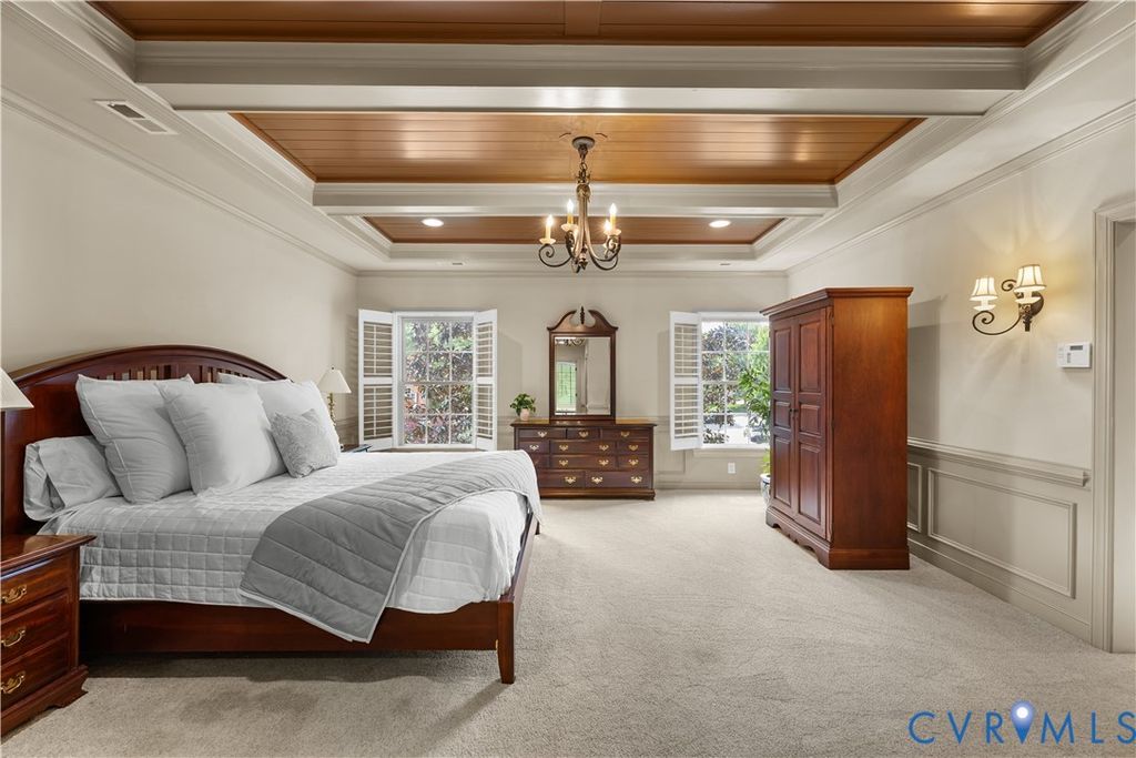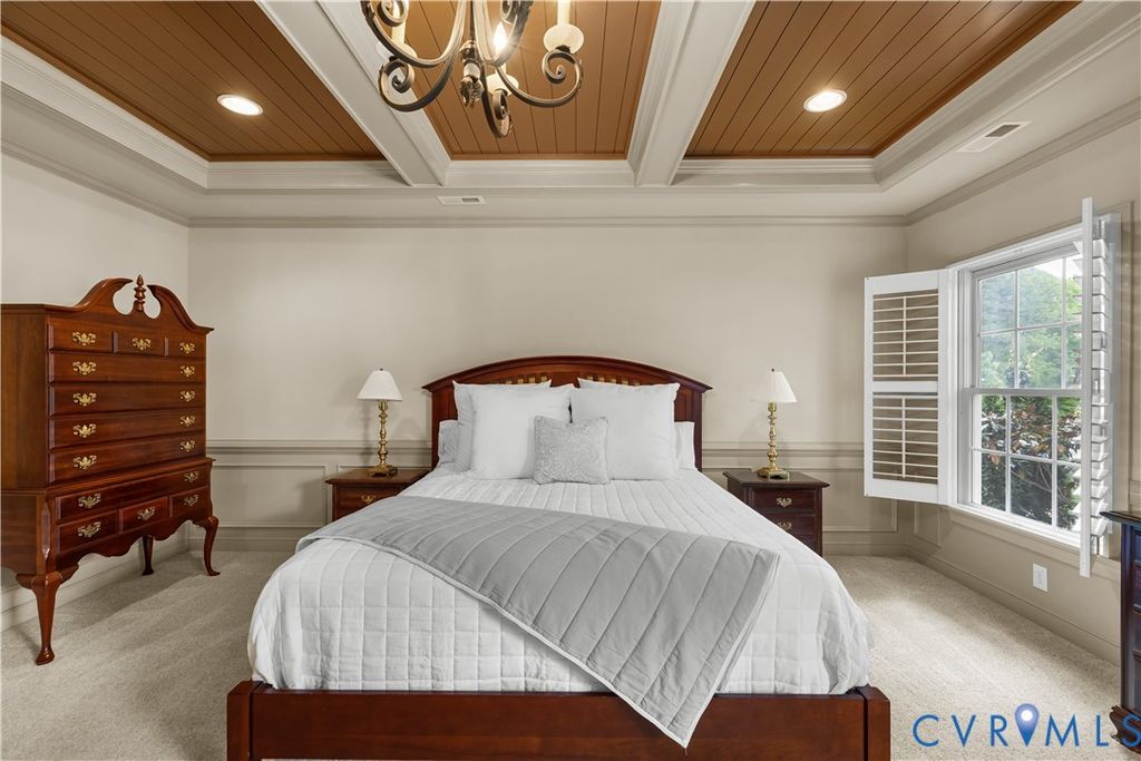 Welcome to this stunning 5 bedroom, 5.5 bath estate home located in the highly sought-after Foxcreek Subdivision. Boasting over 6,500 sq ft of meticulously designed living space, this former model home showcases superior craftsmanship, high-end finishes, and thoughtful architectural details throughout. Step into the Foyer highlighting a tray ceiling and you'll immediately feel the elegance. The heart of the home features a dramatic 2-story Great Room"”flooded with natural light and flowing effortlessly into a spacious, Eat-in Gourmet Kitchen, perfect for entertaining or everyday living. Another standout featured room is a vaulted Conservatory/Sunroom with exposed beams, built-ins, and panoramic windows which offers the perfect spot to unwind. Upstairs, the luxurious Primary Suite is a private retreat, offering a NEW stunning ceiling upgrade, a separate attached vanity room, dual walk-in closets, and a spa-like en-suite bath with a garden tub, dual vanities and granite counters . Each of the additional Bedrooms is generously sized, with three featuring private En-suite Baths and the fourth with direct access to a Full Bath. Additional highlights include a private home Office, elegant Formal Dining Room, a Loft area providing picturesque views, and a third-floor Bonus Room with Full Bath- that can serve as a fifth Bedroom or flexible Living Space. The large Laundry/Utility/Mud Room includes both access to the secondary front entrance and Garage entry for added convenience.. The conditioned Garage features its own HVAC unit"”one of four total HVAC systems recently serviced for peak performance. Enjoy outdoor living on the expansive back deck surrounded by mature landscaping and privacy fencing. This home blends luxury, comfort, and functionality in one of the area's most desirable neighborhoods known for its top-rated schools and community access to a pool, gym and clubhouse! Don't miss your chance to own this one of a kind showcase home!