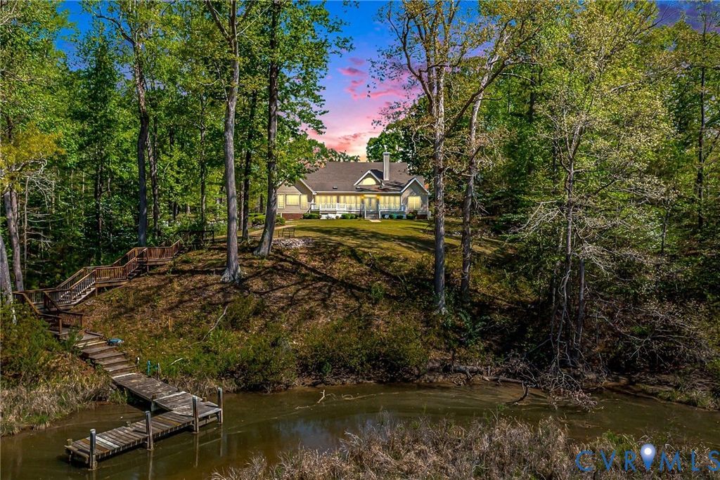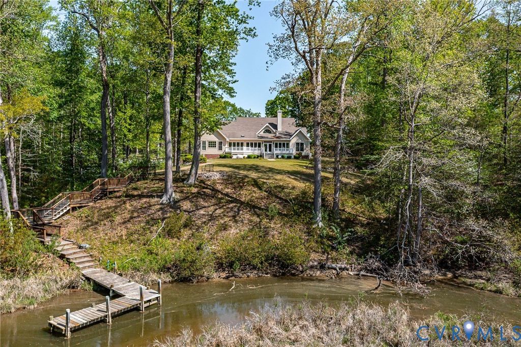 Waterfront Home on a private 4.56 acres with Stellar Curb Appeal ! Some Highlights: 3,358 square feet of living area, 5 bedroom, 4.5baths, Custom Kitchen (with Granite/ Stainless & Quality cabinetry), Great Room with Vaulted Ceilings plus gas logs, Formal Dining Room, Open Floorplan, TWO 1st floor Primary en-Suites (one having a fireplace & Trayed ceilings), Large Walk-in closets, Jacuzzi Tub, huge waterside Sunroom, 40x 23 deck great for entertaining, 2 more guest rooms & full bath on the main floor, large Laundry/half bath, garage & more ! The Second floor offers a private, large en-suite bedroom/gameroom area. Other Features: New Heat Pump w/propane back-up, Generator, High Speed internet & hardwired surveillance. On a Beautiful parcel of land with great Elevation, an impressive entrance with a park-like feel, Pier, and a very peaceful Setting on Taylors Creek which flows into the Corrotoman River then the Rappahannock River. The property is ideally situated close to amenities in Kilmarnock & Irvington with Shopping, dining, a hospital, schools and so many great attractions.