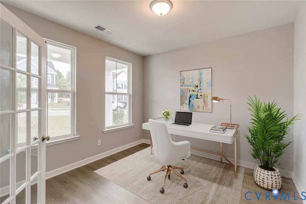 The two-story Peachtree is a four bedroom, two-and-one-half bathroom home. As you enter the home, you are greeted by a spacious office. Next, you come across the formal dining room, which leads to the open great room, overlooked by the kitchen and eat-in area. The primary bedroom is downstairs and features a large walk-in closet and an over-sized linen closet. The primary bedroom has a luxury bath. The laundry room, which features a pass-through from the primary suite's walk-in closet, is conveniently located off the garage entry. Upstairs, all three secondary bedrooms include walk-in closets and share a hall bathroom. Also upstairs are a loft and an unfinished storage area. *Photos for new homes may vary from the actual home available for sale. We often showcase pictures from a model home of the same style*
