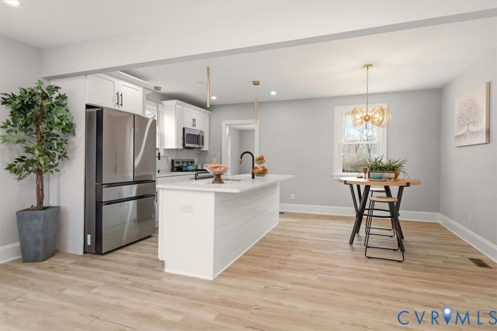 Charming and completely updated brick bungalow offering 3 bedrooms, 2.5 baths, and 1,182 sq ft of move-in ready living space. This beautifully refreshed home combines classic character with modern upgrades throughout. The freshly painted brick exterior adds timeless curb appeal, while inside you'll find a brand-new kitchen featuring new cabinetry, countertops, and all-new appliances including electric stove, refrigerator, and dishwasher. Bathrooms have been fully updated with modern finishes, and new laminate flooring runs throughout the home. New lighting fixtures provide a bright, contemporary touch in every room. Major system updates include a new heat pump and new water heater for added comfort and efficiency. Existing roof and windows remain in place. The property also features a detached 1.5-car garage, offering extra storage or workspace potential. Perfect for first-time buyers, downsizers, or investors looking for a turnkey opportunity. Schedule your private showing today!