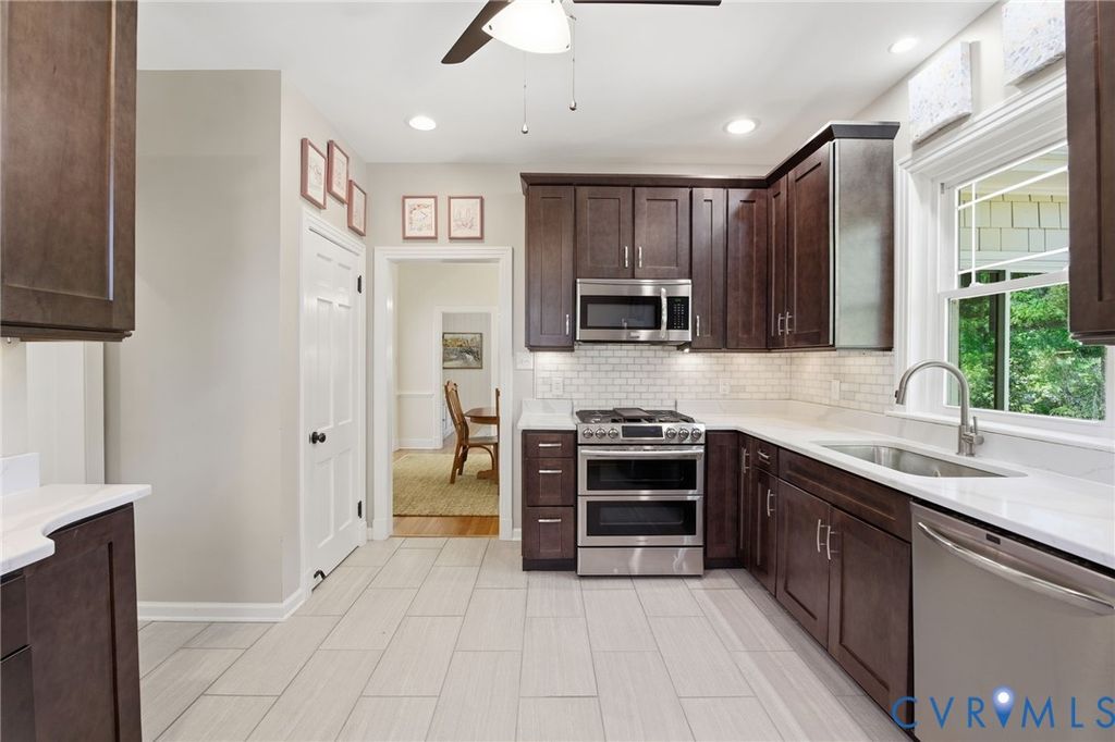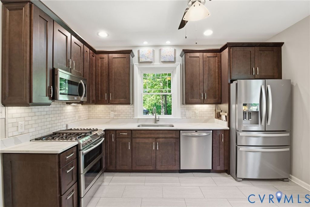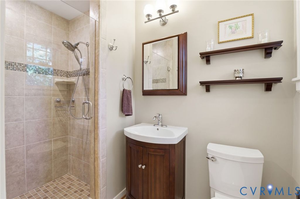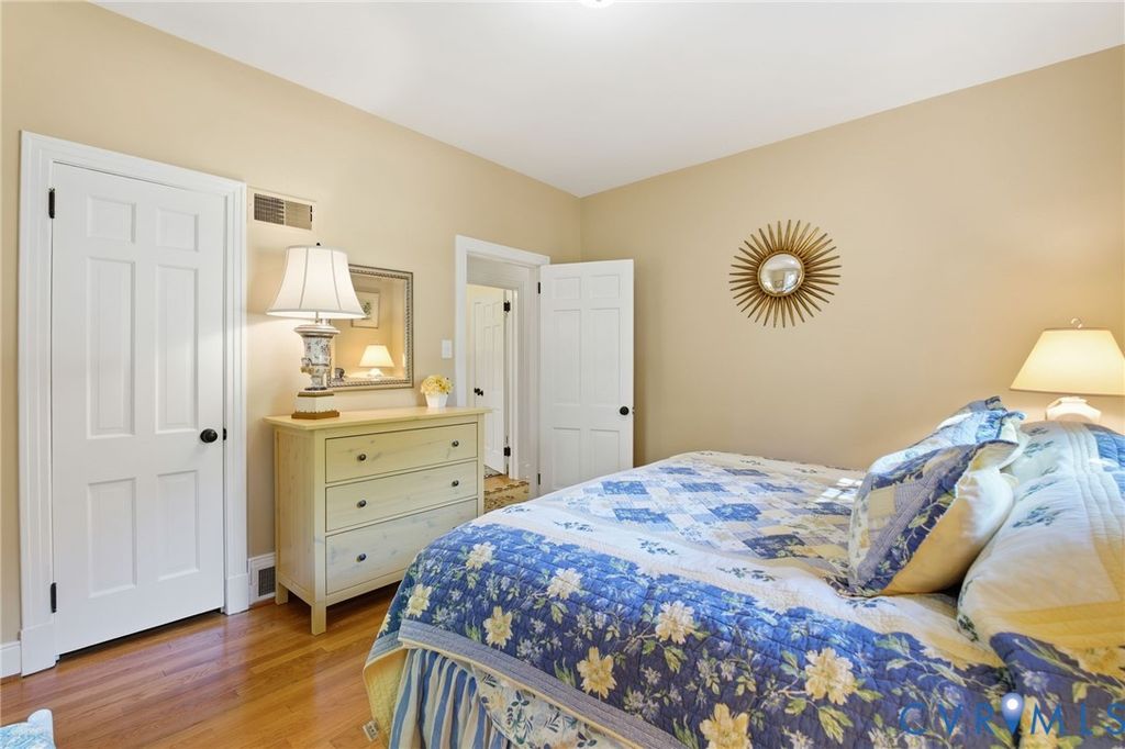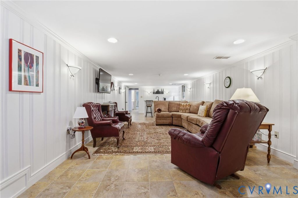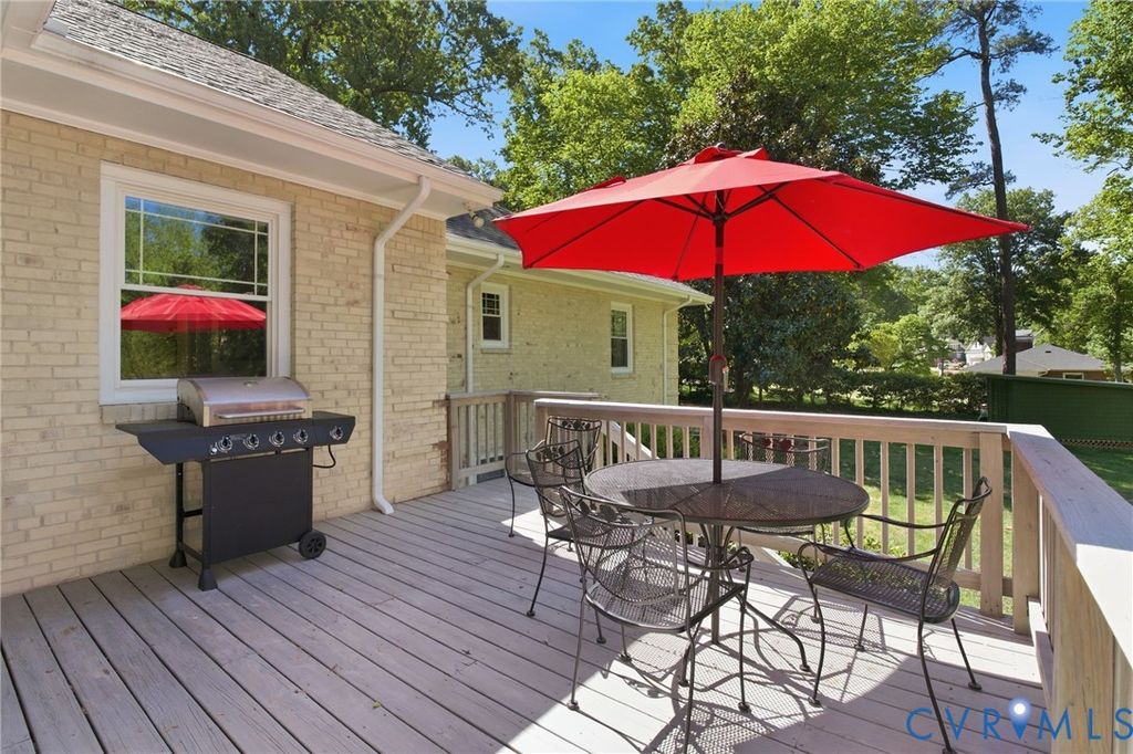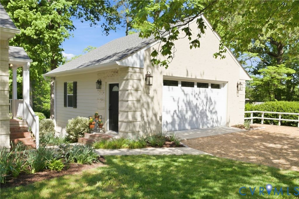 Tucked along the James on a private .53 acre lot, this east-facing mid-century ranch delivers a wonderful combination of natural seclusion and city proximity. The limewashed exterior, new gutters w/ leaf guards, replacement windows, and new 2.5 car garage stand out upon arriving to this beautiful neighborhood. Inside you'll find immaculate hardwood floors throughout leading you to a spacious one level living with 3 bedrooms and 2.5 baths. Between the cozy den and the large open living area, there are ample living and entertaining layouts. The kitchen has been updated with quartz countertops, soft-close overlay cabinetry, and a professional-grade double cavity gas oven with reversible center griddle. Off the kitchen you'll find side door access, storage and a cute half bath. The finished sunroom with new windows, doors and siding overlook the large back yard and lead onto the new deck. You'll love the sunsets from the sunroom! 3 King-sized bedrooms with large closets offer generous comfort, while 2 full baths on the first floor service said bedrooms. The crown jewel is a sprawling 800 sqft finished basement "” a true extension of the home's living space. Gather around the wet bar with granite countertops and beverage fridge, retreat to the private full bathroom and dressing area (could be a bedroom), or create in the unfinished workshop side. Walk-out access, a new mini-split system, and full waterproofing make this lower level as functional as it is inviting. Attached outside shed adds additional options for expansion. New exterior shed is perfect for lawn equipment. Beyond the walls, mature hardwoods frame open lawn and established landscaping in a setting that feels effortlessly park-like. This property offers increasingly rare one floor living in Richmond City with walkability to the James River